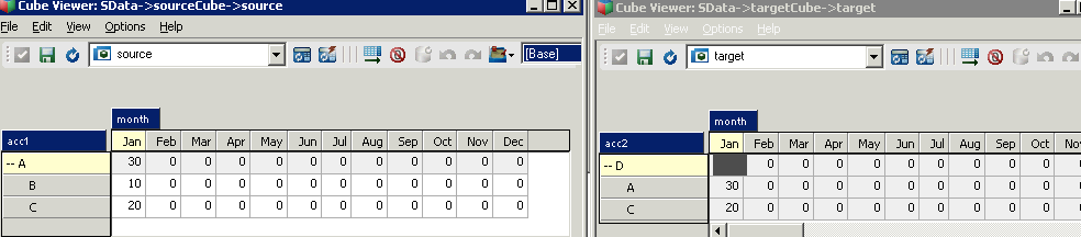 Result: As feeders work on N-level, we will have ‘C’ feeding ‘C’. ‘A’ element will not be fed in the target cube, so the target element ‘D’ will be equal to 20.